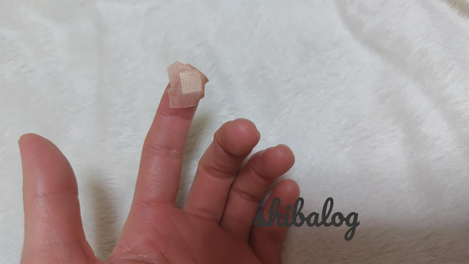 まずは酒精綿で、利き手ではない方の指先を消毒します。
