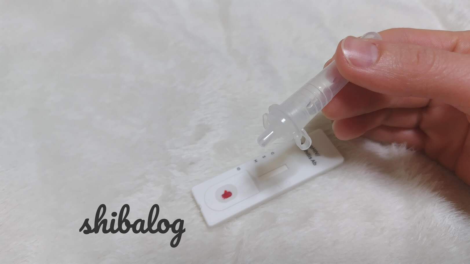 そしてピペットで採取した血液を、検査デバイスにこんな感じで滴下します。