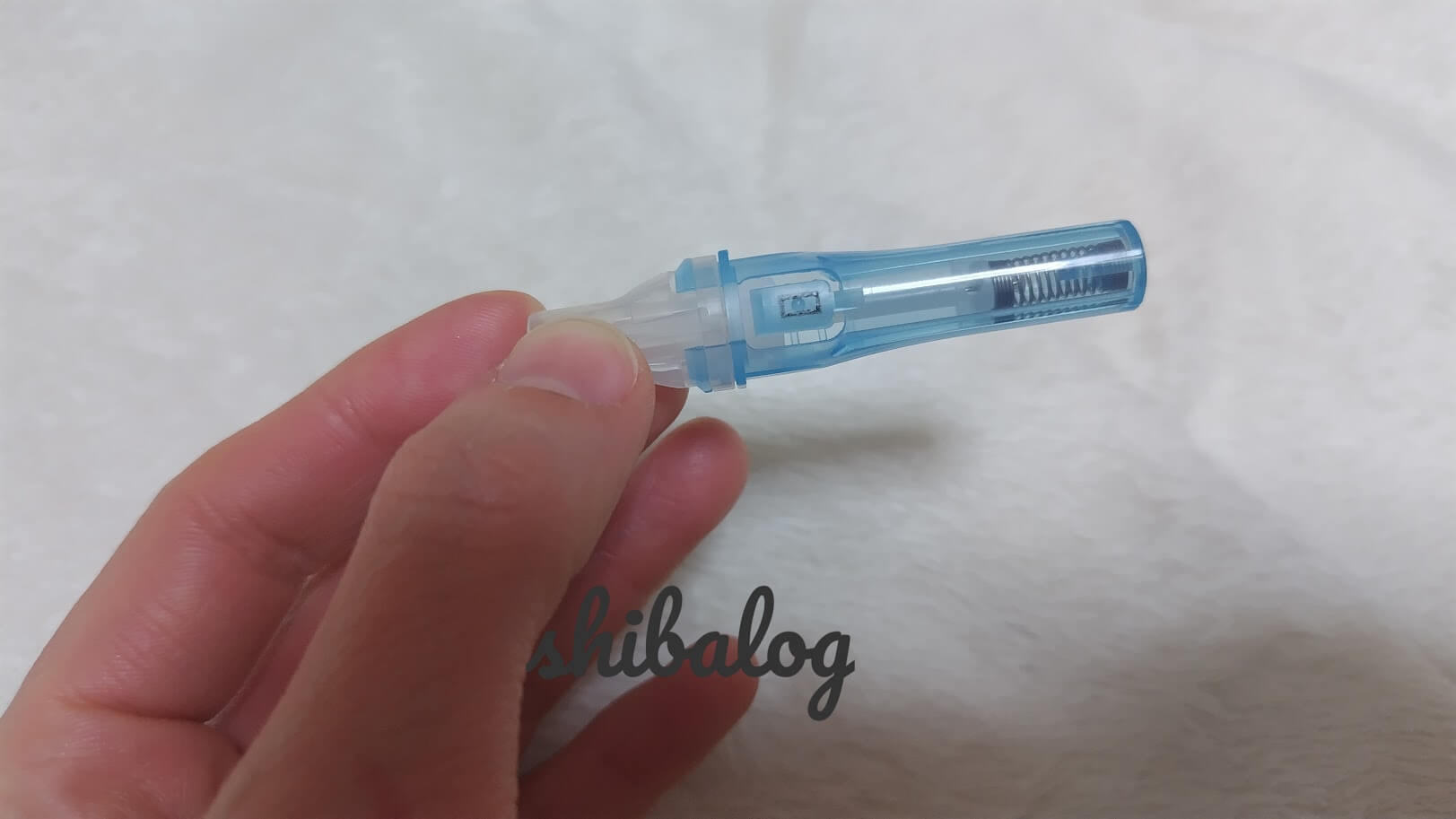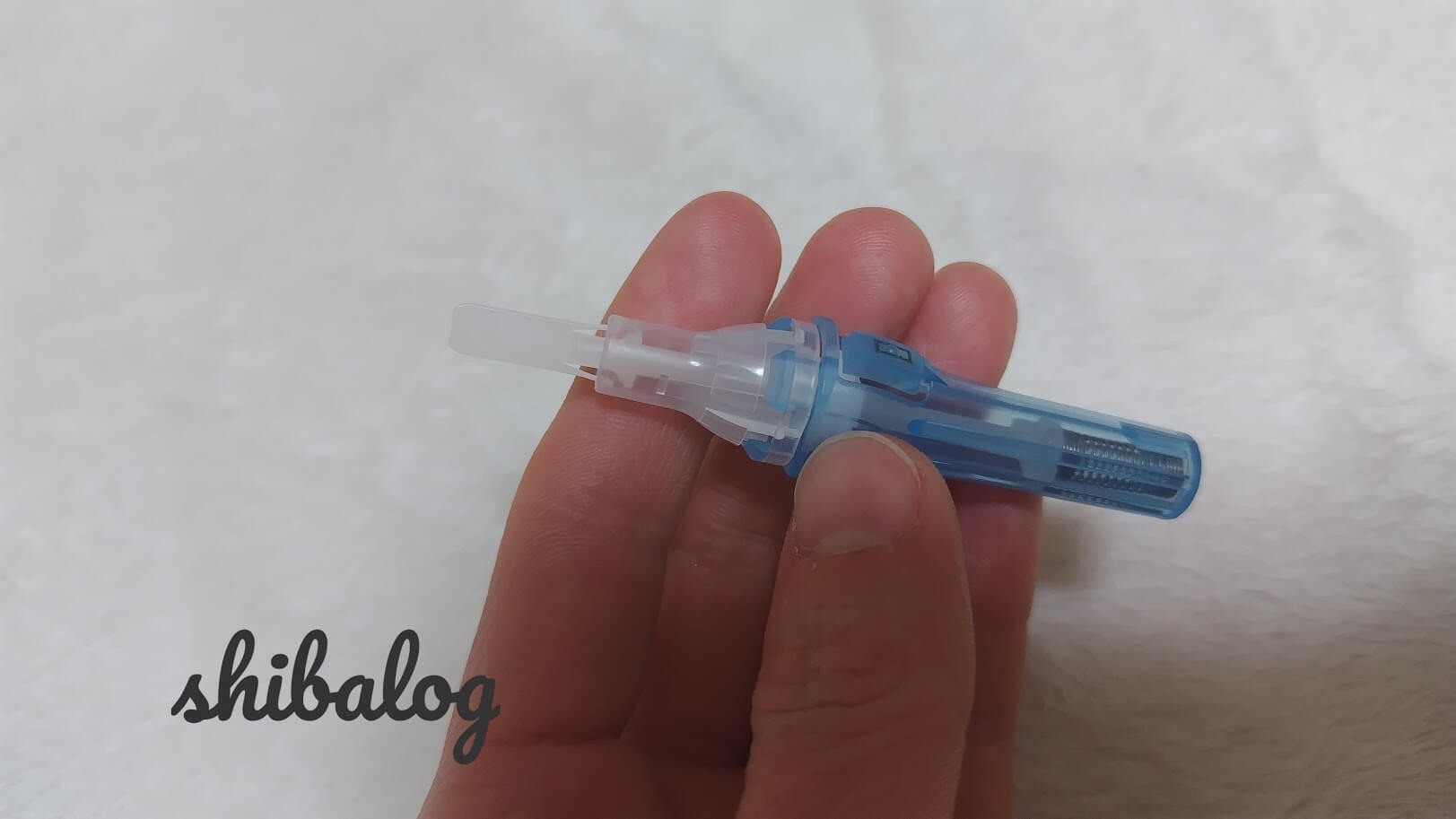 真ん中の部分を押すと指先に針がチクッと刺さります。