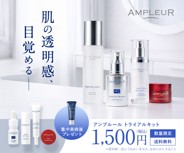 そこで肝斑をせめて薄くしたい!という思いで化粧品を探しているとアンプルールという化粧品に辿りついたので、詳しく調べると初回限定トライアルキットがあって、まずはリーズナブルにお試しできるので実際に購入してみることにしました。