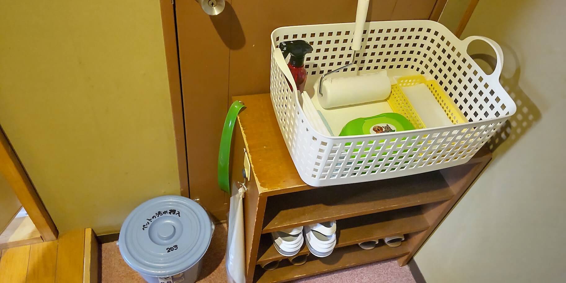 玄関にはペットの汚れもの入れやコロコロ、消臭剤やおしっこシート等置いてあって助かります。