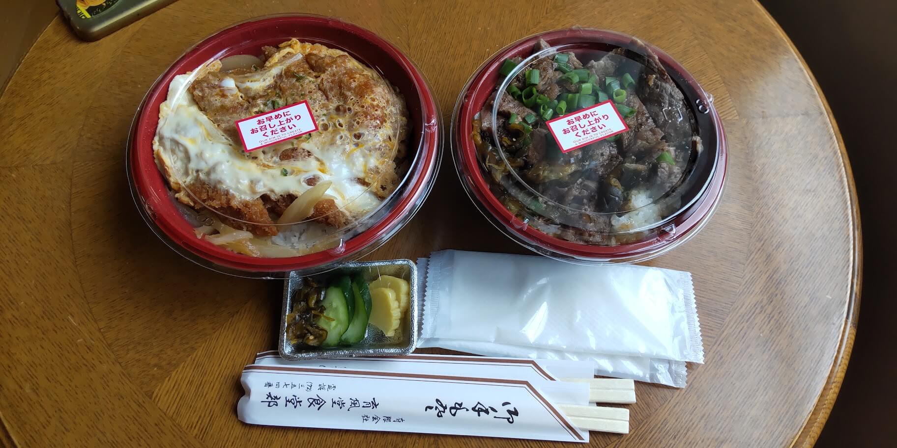育風堂精肉店でのテイクアウトはかつ丼880円と、ワイルドステーキ丼1200円です。