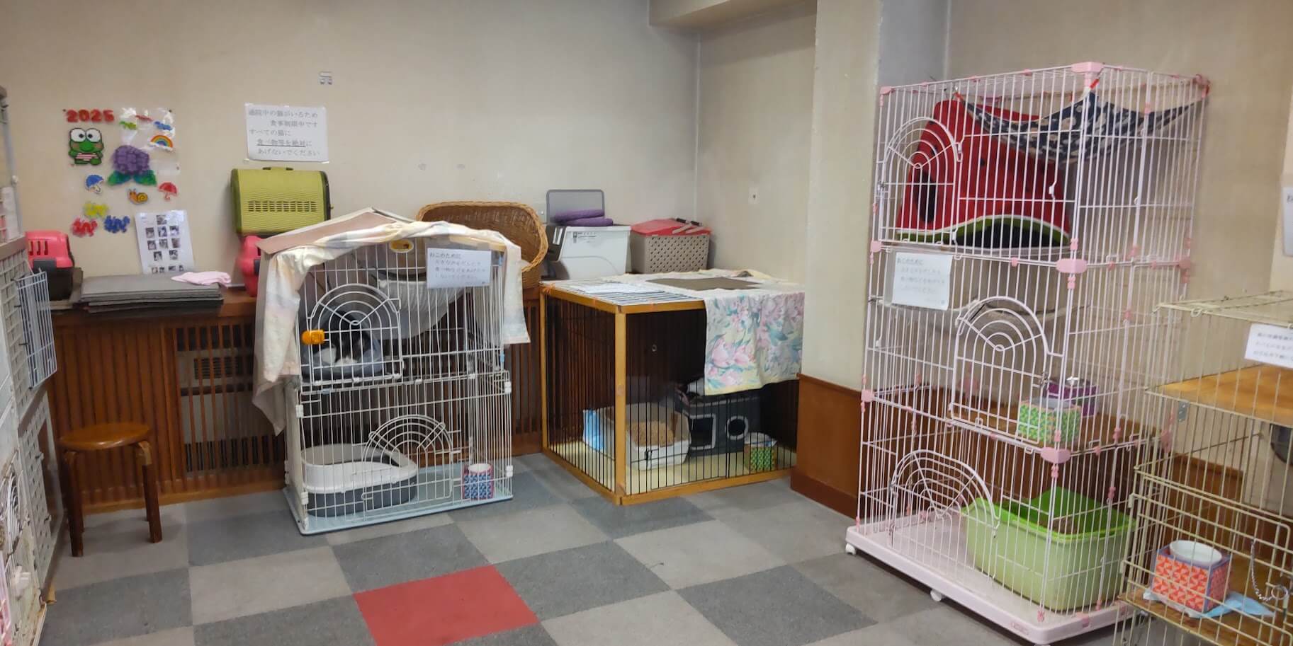 先ほどの写真のすぐ横はこんな感じで、保護猫8匹が暮らしています。
