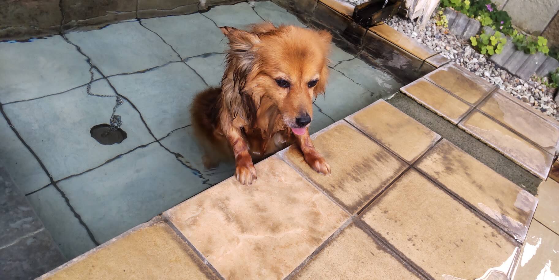 今回の旅の一番の目的、愛犬を温泉に入れる!を実行できました。