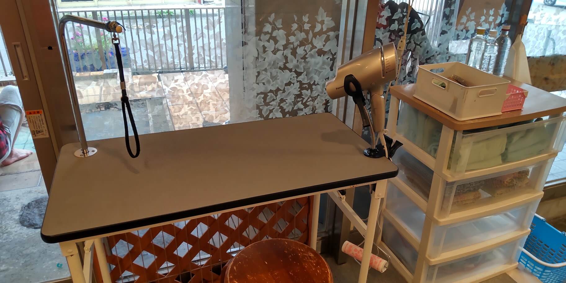 こんな感じでペットを乾かす台とドライヤーが置いてあります。