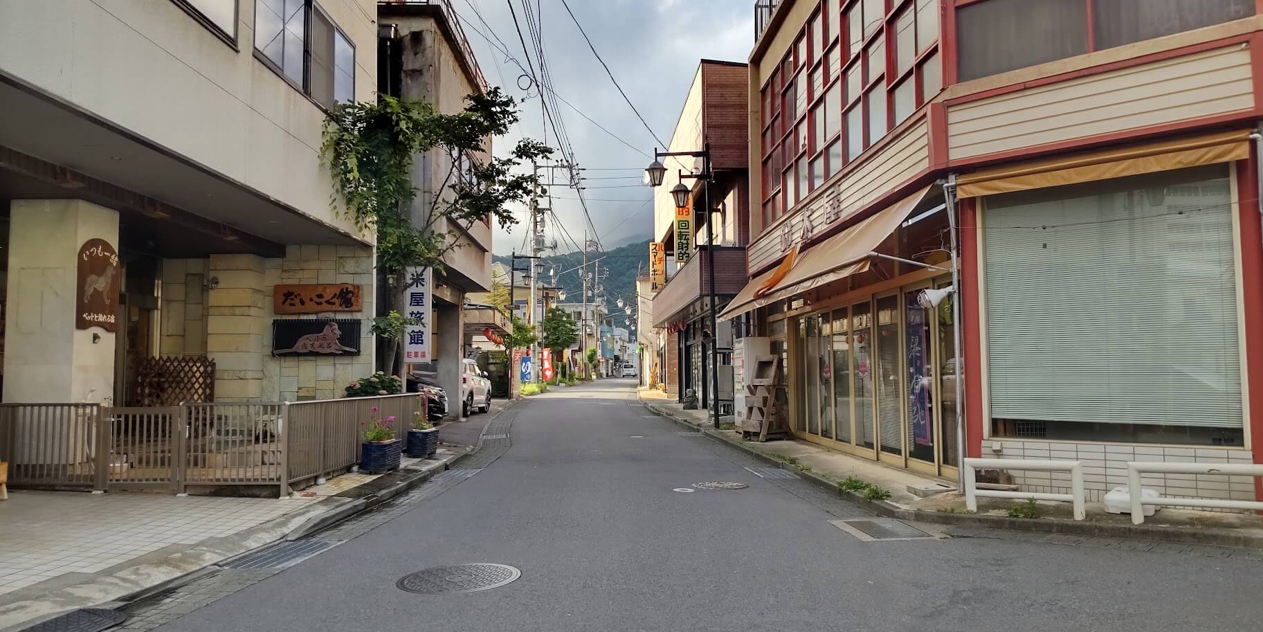 だいこく館の目の前の道が水上温泉のメインストリートだと思われます。