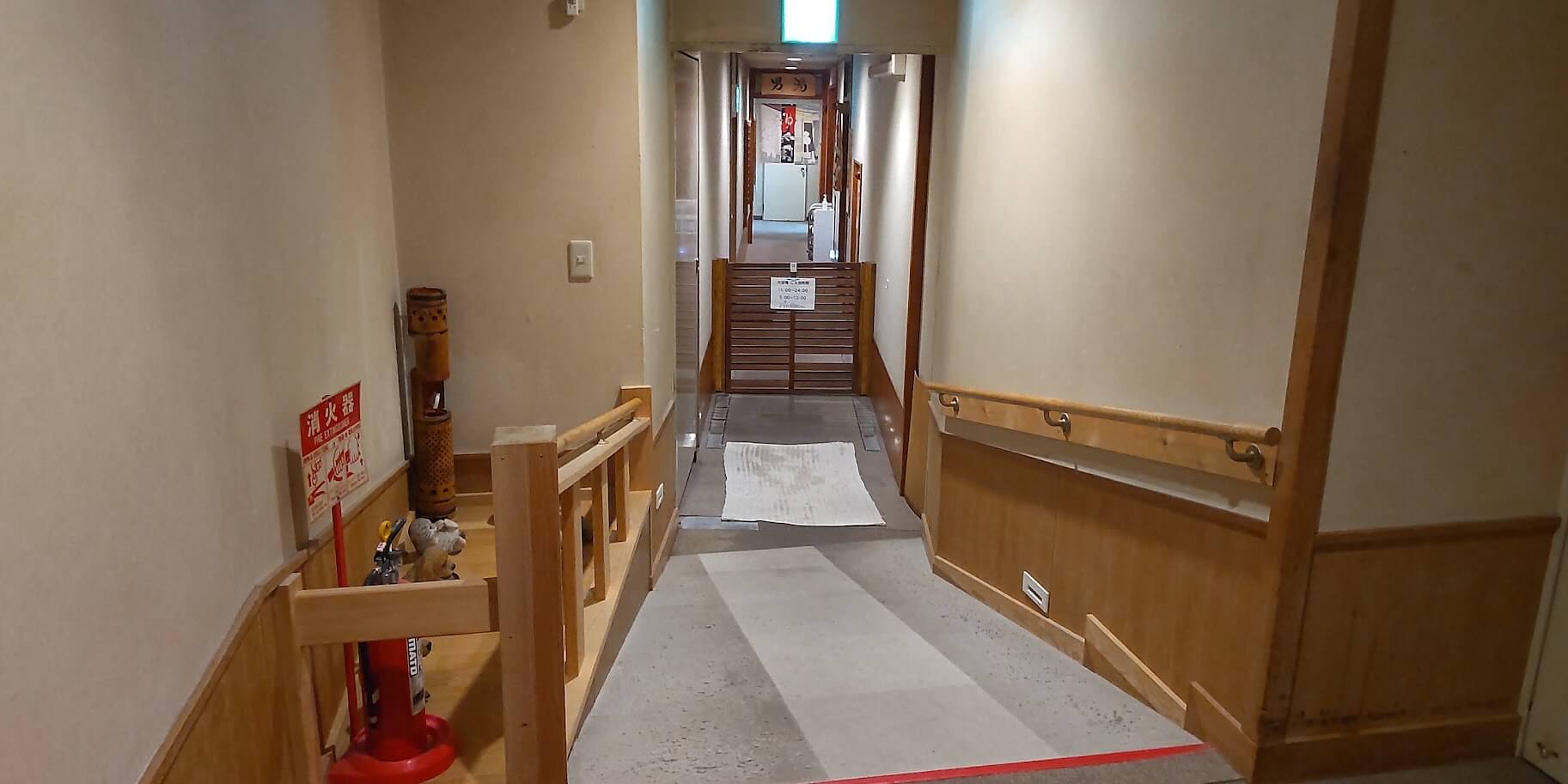 写真突き当りが男湯で、右側に女湯があります。