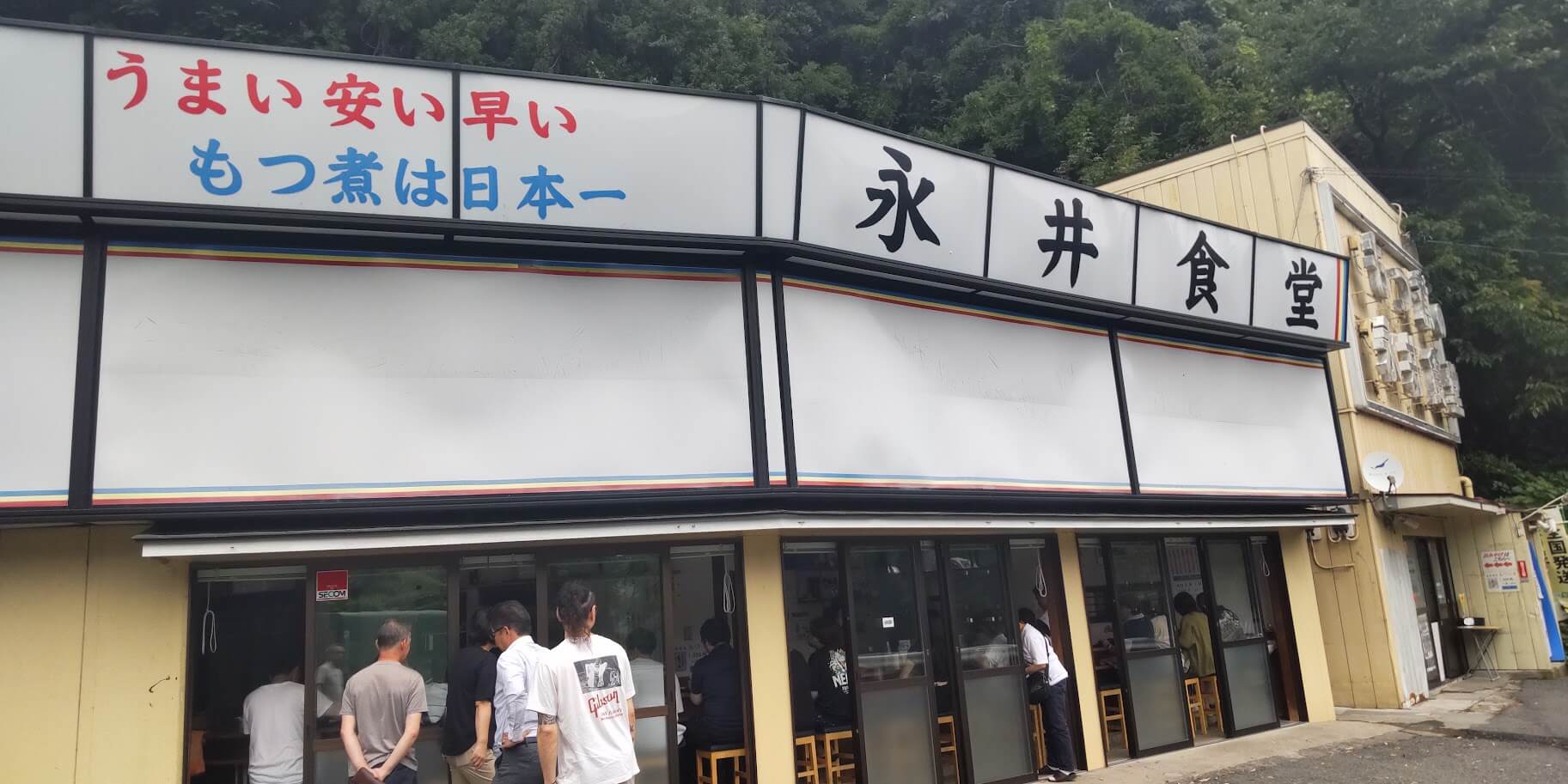 だいこく館から車で35分程のところに、永井食堂という超有名なもつ煮定食のお店があるので行ってきました。