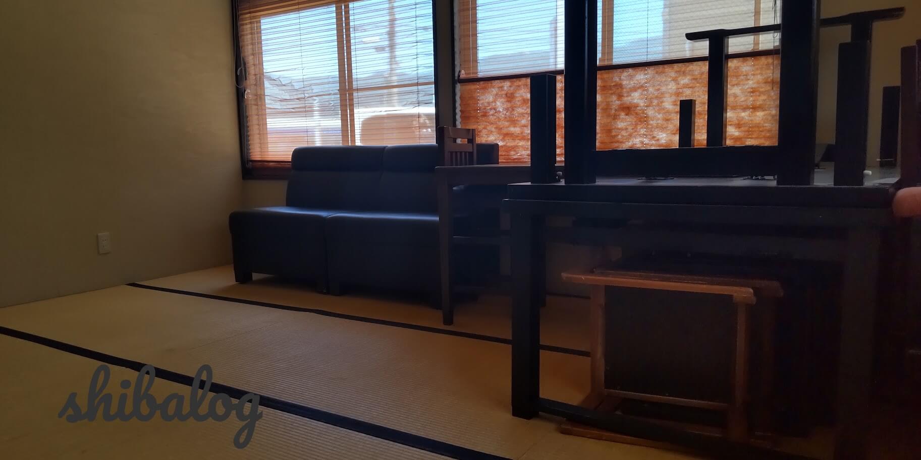 座敷はまだ完成していない感じで、テーブルが端に寄せられていてました。