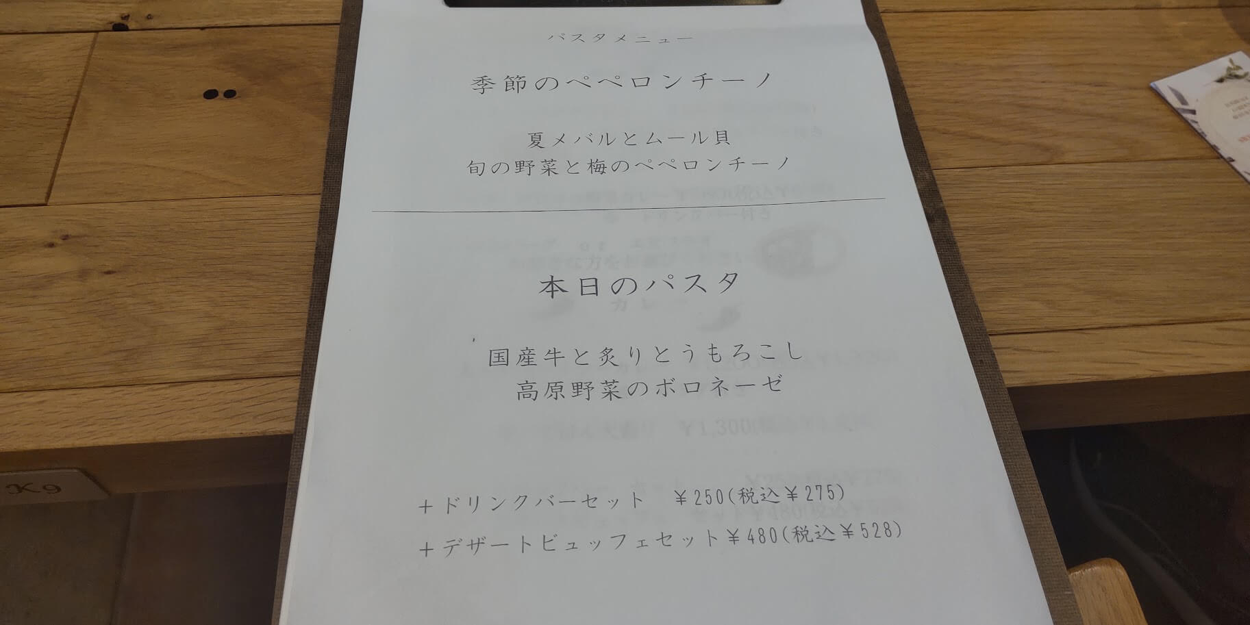 本日のパスタメニューもありました。