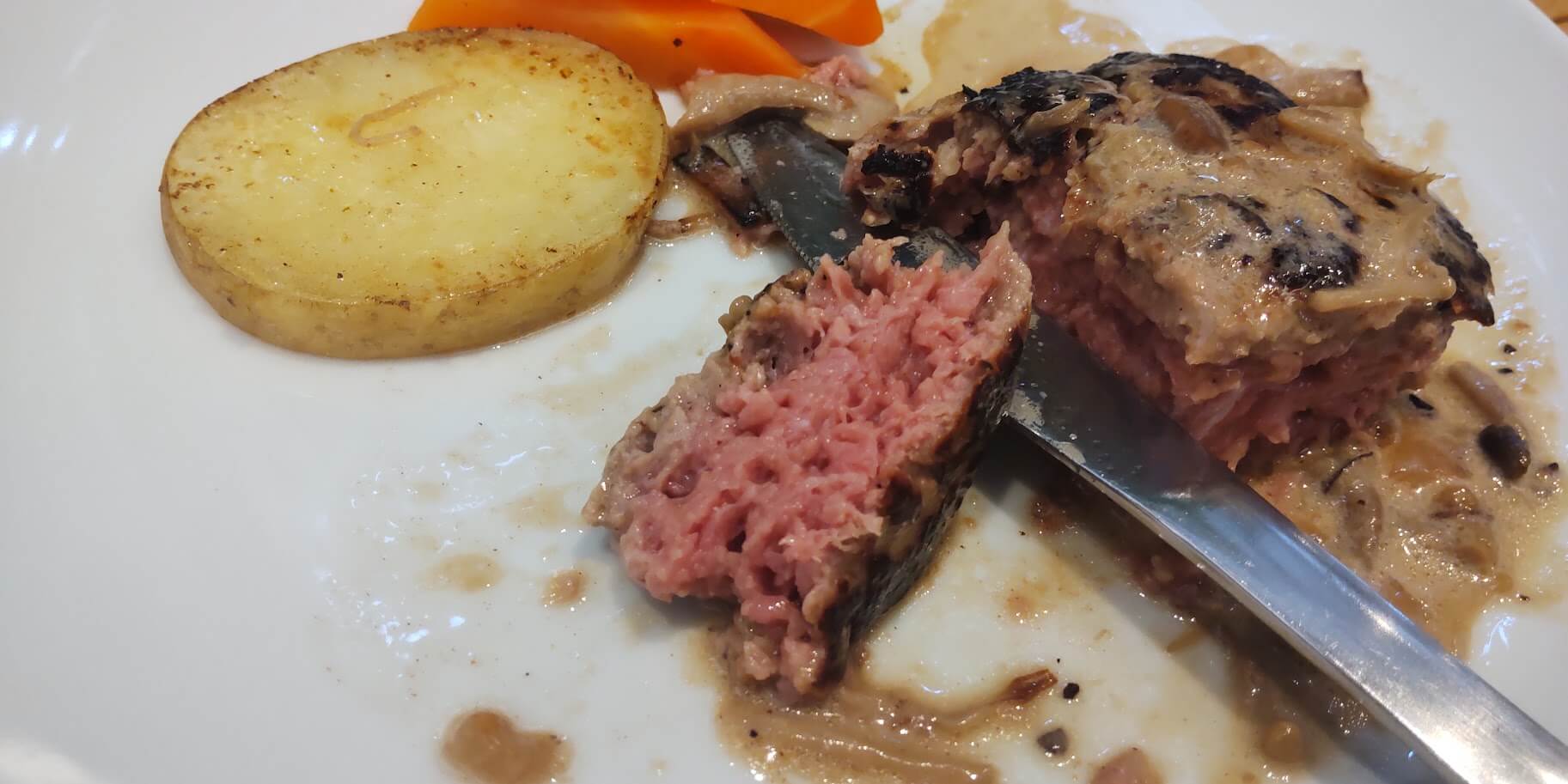 あと食べ進めて気になったのが中がとってもレアでめちゃピンク色だったこと。
