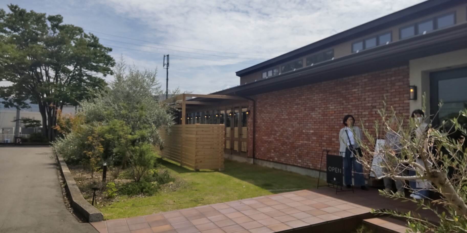 写真中央部分の囲いがされた場所が多分テラス席になっています。