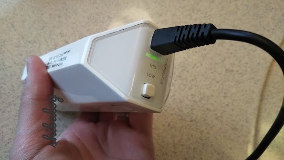 コンセントに挿してボタンを押してみると緑色に光ります。