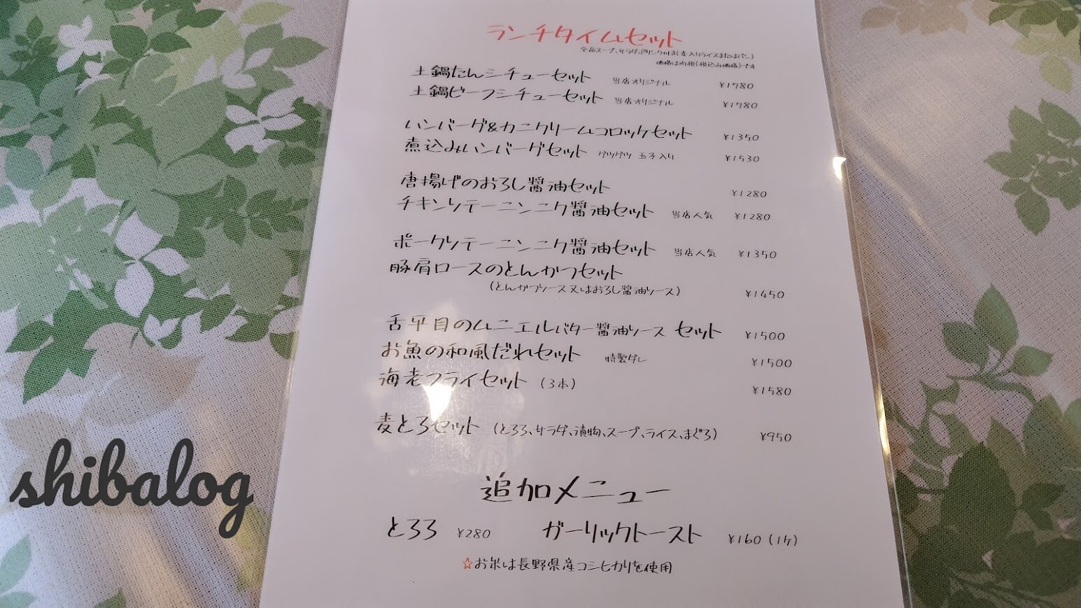 ランチメニューがこちら。