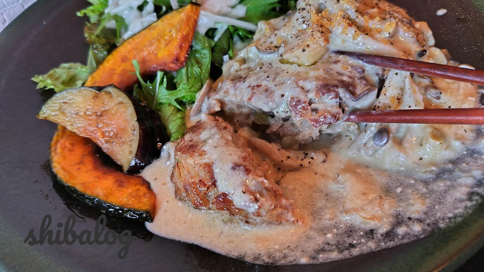ナスとかぼちゃが添えられていて、程良い香ばしさと甘さが良いアクセントになっていました。