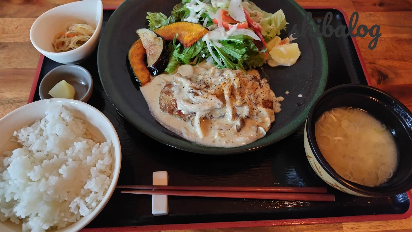 私は壁のボードに書かれていたおすすめ定食、ガーリッククリームハンバーグ定食(1480円)を注文しました。